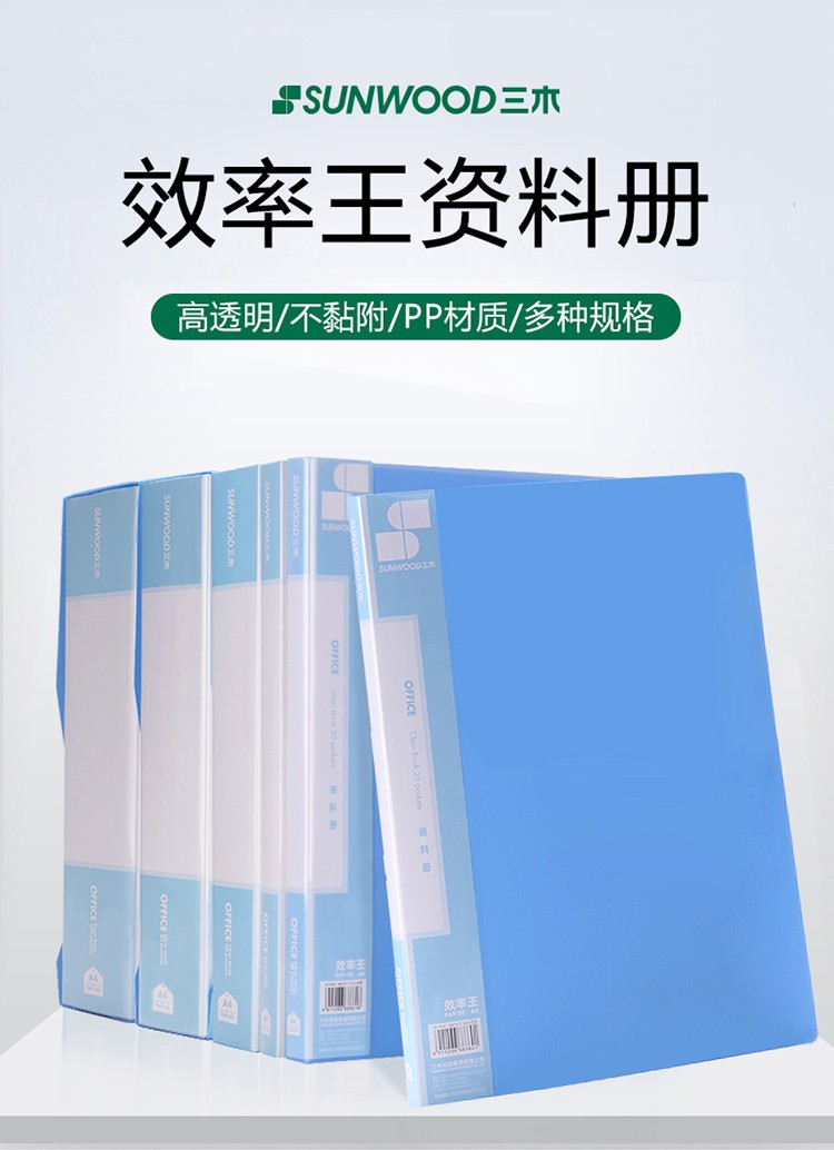 • 商品名称:三木(SUNWOOD)效率王系列 A4/60页资料册/插袋文件册/活页文件夹 蓝色 P69-60
