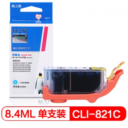 • 商品名称:格之格CLI-821C青色墨盒NC-00821C适用佳能IP3680 4680 4760 545 558 568 638 648 MX868 876打印机墨盒