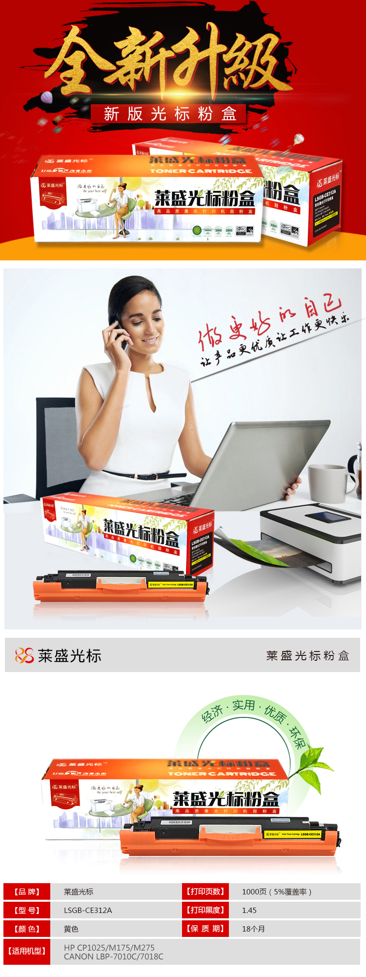• 商品名称:莱盛光标LSGB-CE312A彩色硒鼓适用HP CP1025/M175/M275 CANON LBP-7010C 黄色
