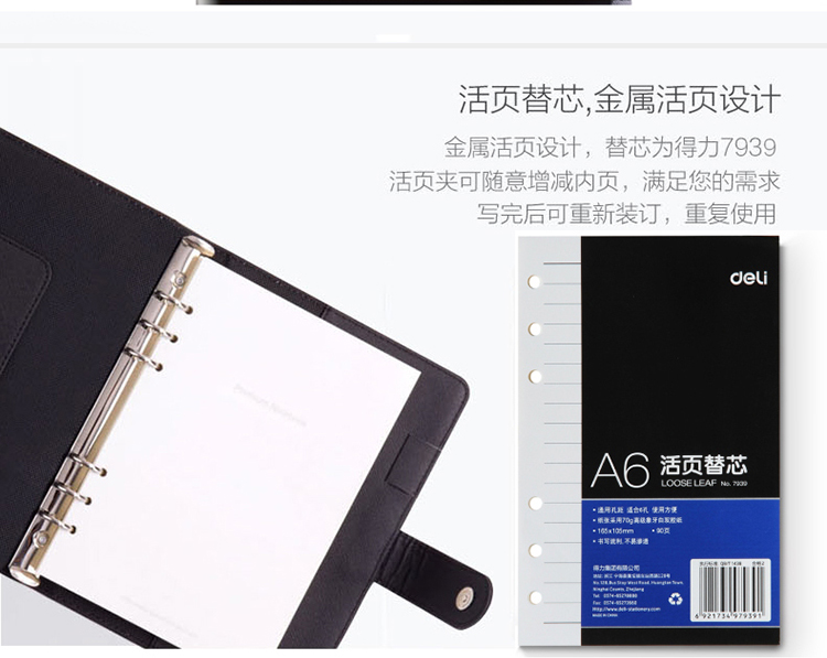 • 商品名称:得力(deli)7in96张基础款活页皮面本 6孔商务办公记事本笔记本子 黑咖随机 3152