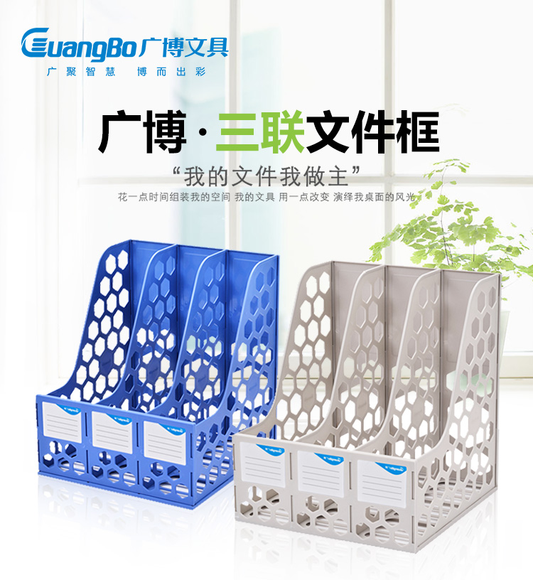 • 商品名称:广博(GuangBo)三联文件框/资料架/办公用品加固型 蓝灰颜色随机 单个装WJK9236