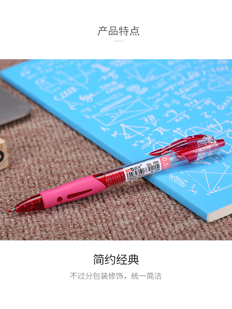 • 商品名称:晨光(M&G)GP1008红色0.5mm按动中性笔子弹头中性笔签字笔水笔 12支/盒