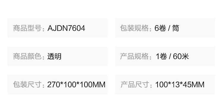 • 商品名称:晨光(M&G)45mm*60m(50um)透明封箱打包胶带 6卷/筒AJDN7604