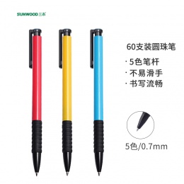 三木(SUNWOOD) 60支0.7mm五色笔杆按动圆珠笔/...