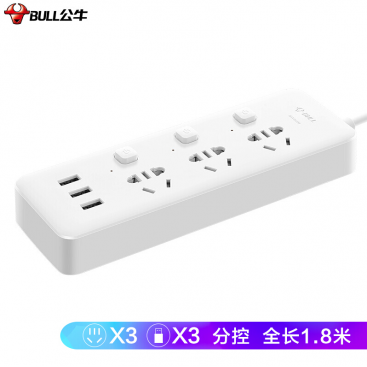 • 商品名称:公牛(BULL)GN-B3033 新国标公牛小白USB插座/插线板/插排/排插/接线板 3插孔+3USB口分控插座