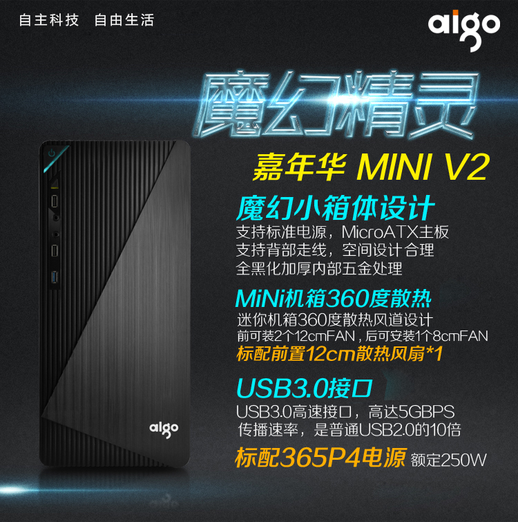 • 商品名称: 爱国者(aigo) 嘉年华V2 黑色 MICRO机箱(支持MICRO ATX主板/标配额定功率25