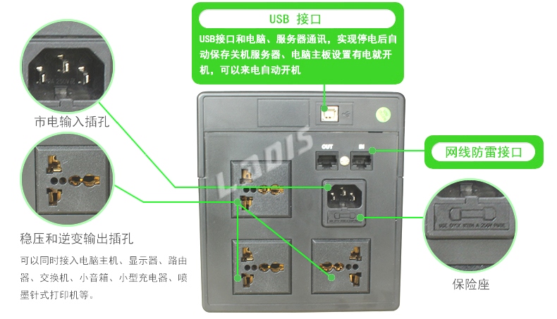 • 不间断电源H1000 600W服 单电脑45分钟自动开关机务雷迪司UPS