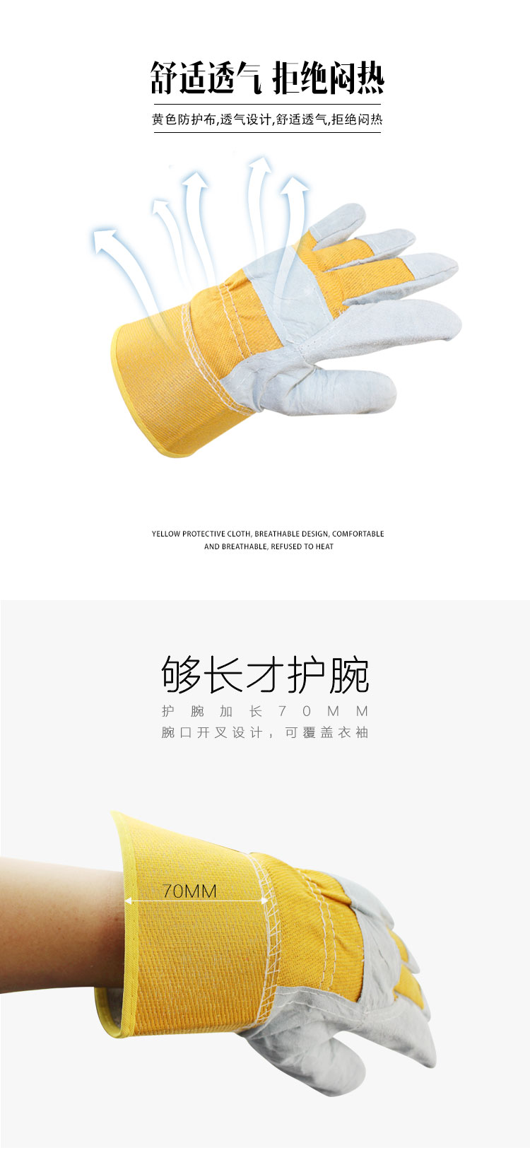 • 商品名称: 谋福 牛皮电焊防护手套 隔热耐磨焊工防寒透气 劳保用品 手部防护