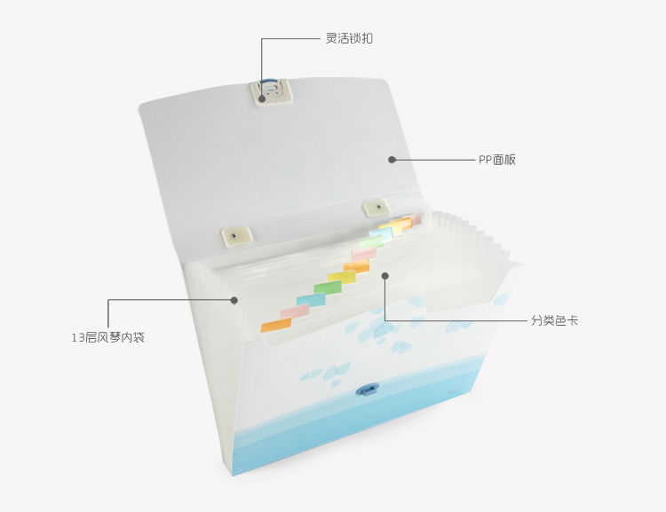 • 金得利 DC4016 A4多色13格风琴包办公包手提资料分类包
