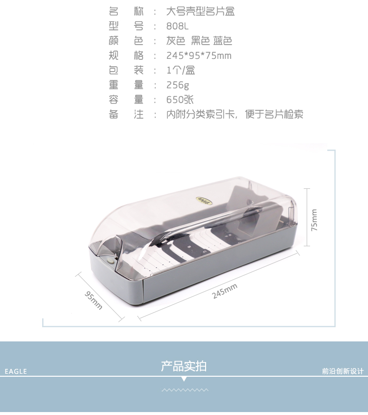 • 商品名称:益而高(EaGLE)大容量名片盒 透明翻盖收纳盒整理盒名片座创意名片夹 A-Z字母索引 约装650张 808L 灰色