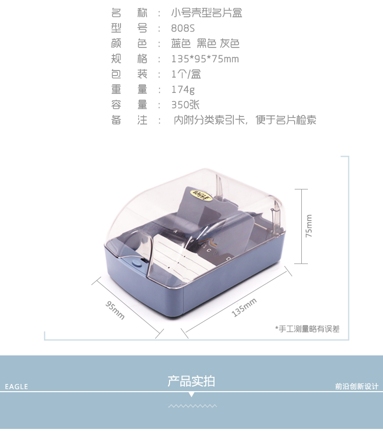 • 商品名称:益而高(EaGLE)大容量名片盒 透明翻盖收纳盒整理盒名片座创意名片夹 A-Z字母索引 约装350张 808S 黑色
