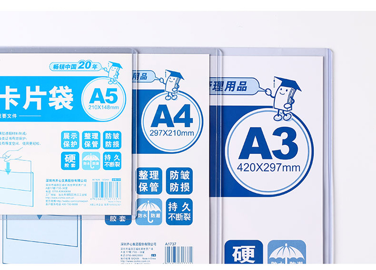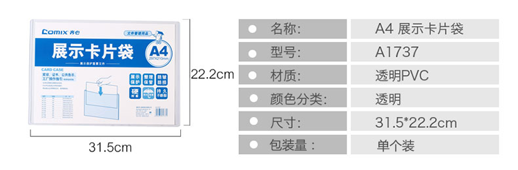 • 商品名称:齐心(Comix) A1737 易展示卡片袋 A4 硬质 营业执照副本保护套