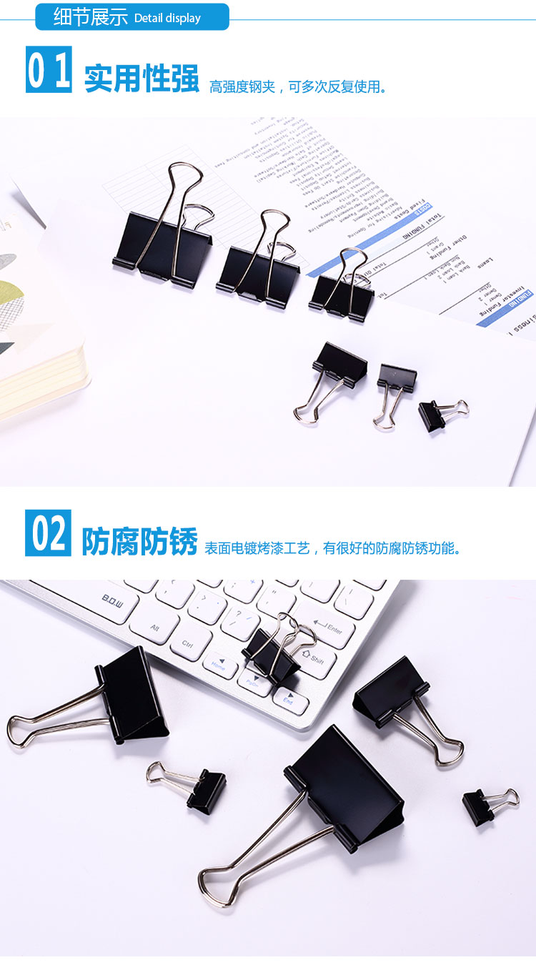 • 商品名称:齐心(COMIX) 12只50mm黑色长尾票夹 金属票据夹燕尾夹铁夹子 大号 B3625