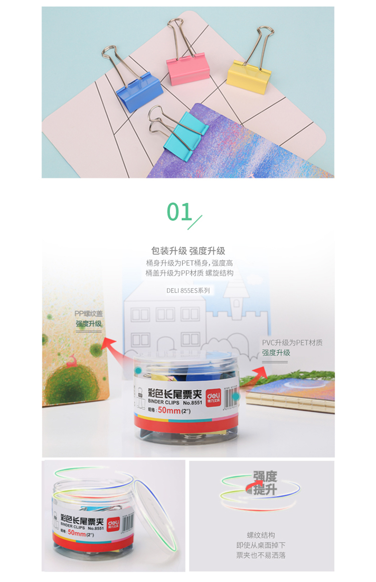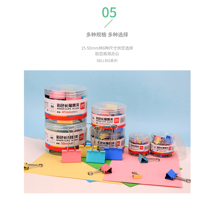 • 商品名称:得力(deli)60只15mm彩色长尾票夹 金属票据夹燕尾夹铁夹子 小号8556