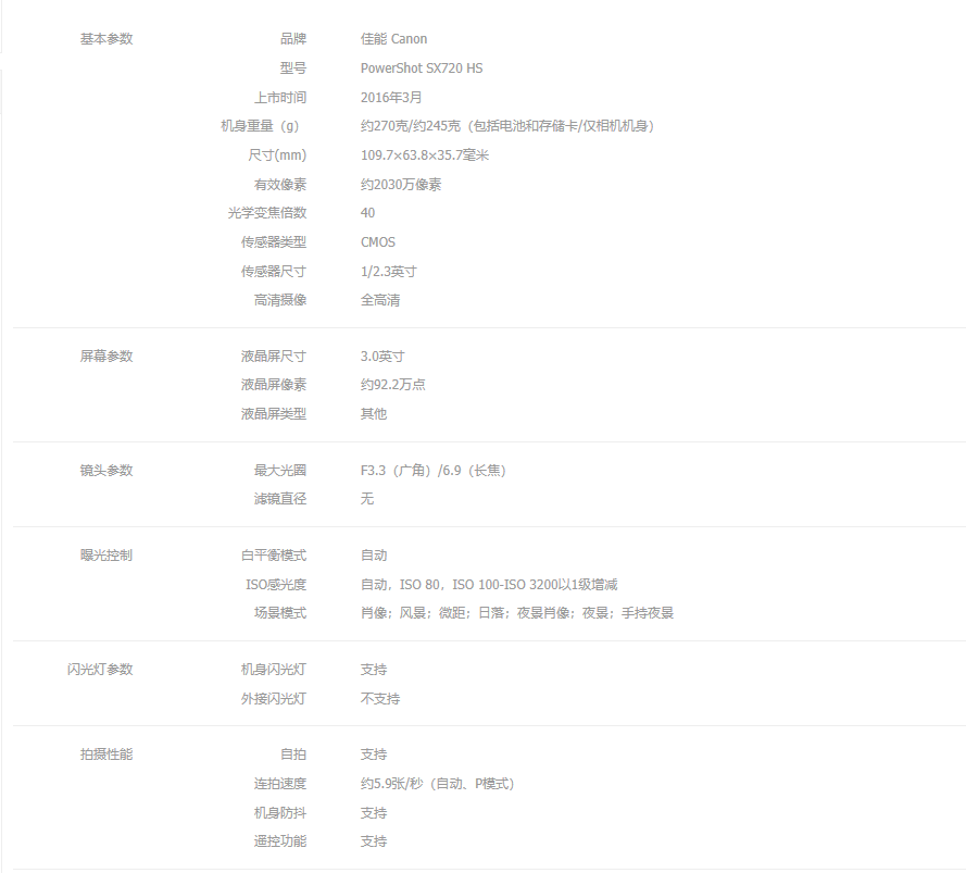 • 商品名称:佳能(Canon)PowerShot SX720 HS 数码相机