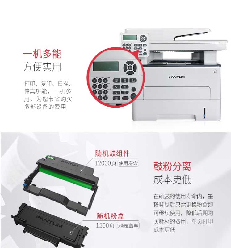• 奔图(PANTUM)M7205FDN黑白激光多功能一体机 打印复印扫描传真