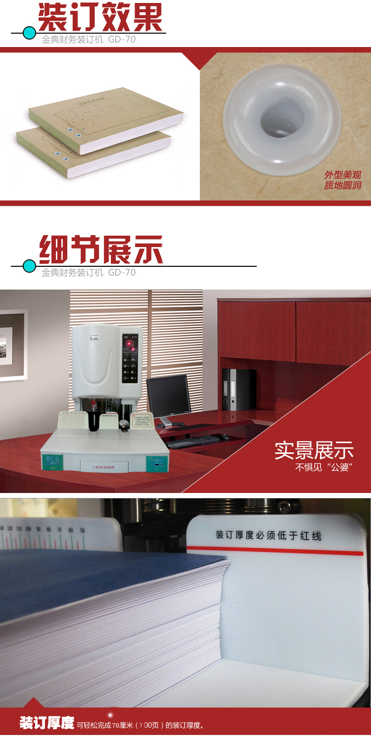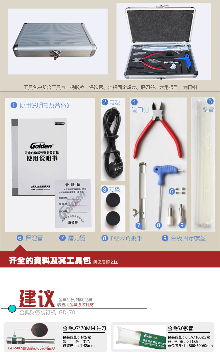 • 商品名称:金典(Golden)GD-70装订机财务凭证装订机 档案打孔机 7厘米铆管装订机