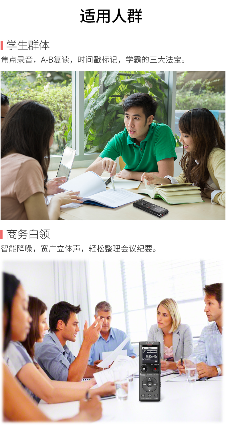 • 商品名称:索尼(SONY)录音笔ICD-UX570F 4GB 黑色 智能降噪升级款 专业线性录音棒 商务学习采访支持内录