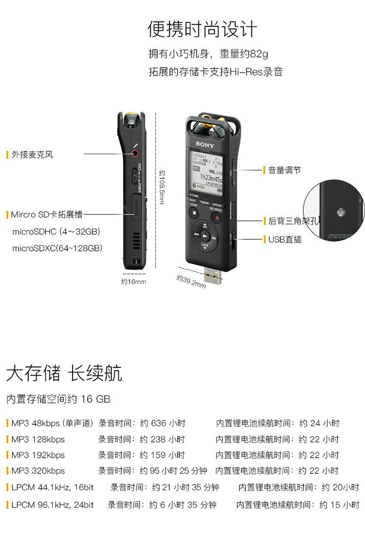 • 商品名称:索尼(SONY)数码录音棒/录音笔PCM-A10 16GB 黑色 高清专业降噪 蓝牙操控 无损音乐播放 商务采访