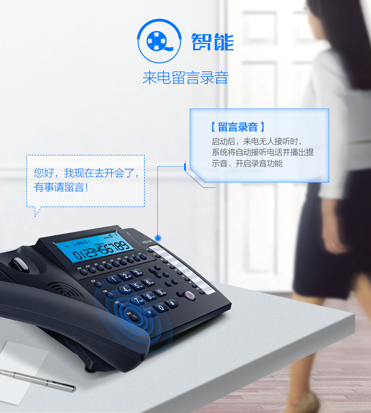 • 商品名称:步步高(BBK)录音电话机 固定座机 办公家用 接电脑海量存储 智能屏幕拨打 HCD198深蓝