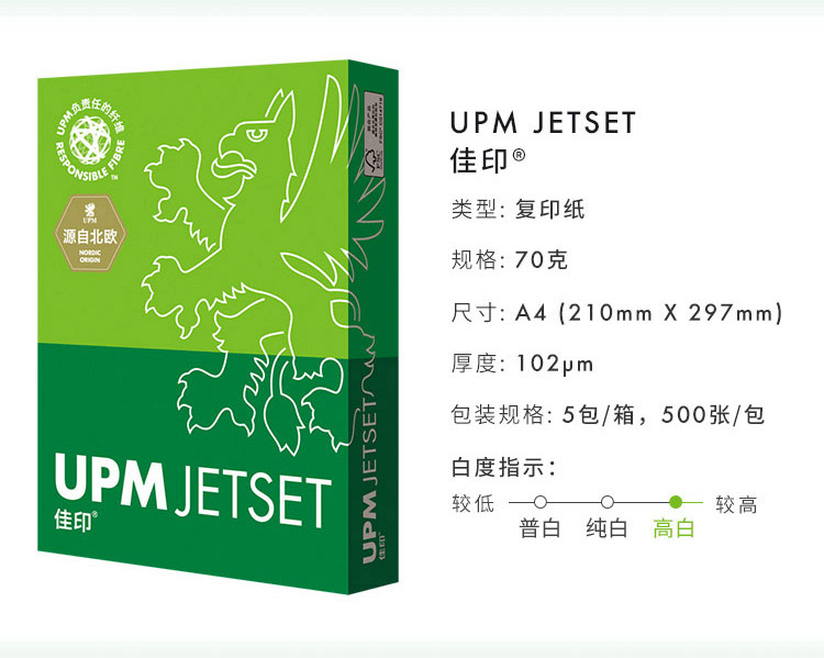 • 商品名称:佳印 高白复印纸 多功能办公用纸 70克A4 5包/箱 500张/包