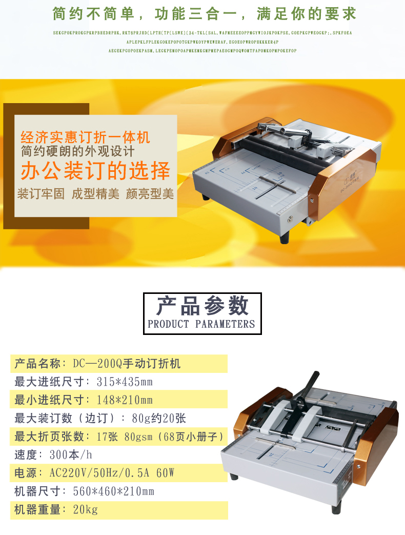 • 商品名称:道顿 DC-200Q A3幅面 手动订折折页机 订折一体机 骑马平钉只折不订 只订不折 订折一体装订机