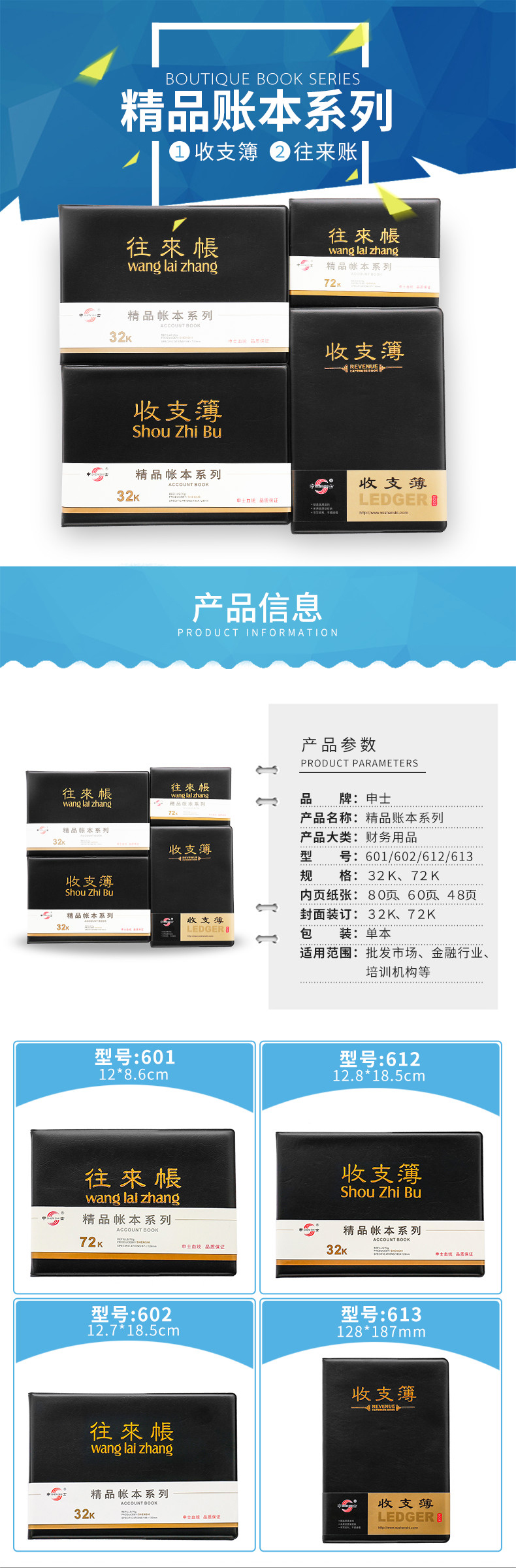 • 商品名称:申士601收支薄大号收支本往来账本记账明细本来往账本流水记账本 601往来账