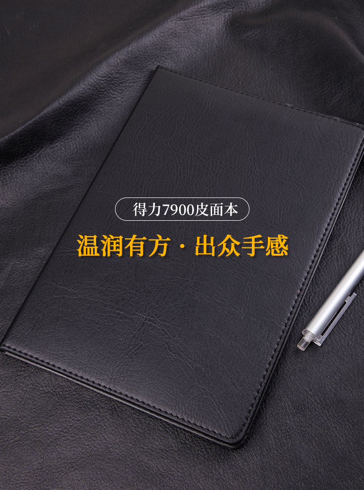 • 商品名称:得力(deli)16K80张大号商务经典皮面本办公用品 会议记事本笔记本子文具 黑7900