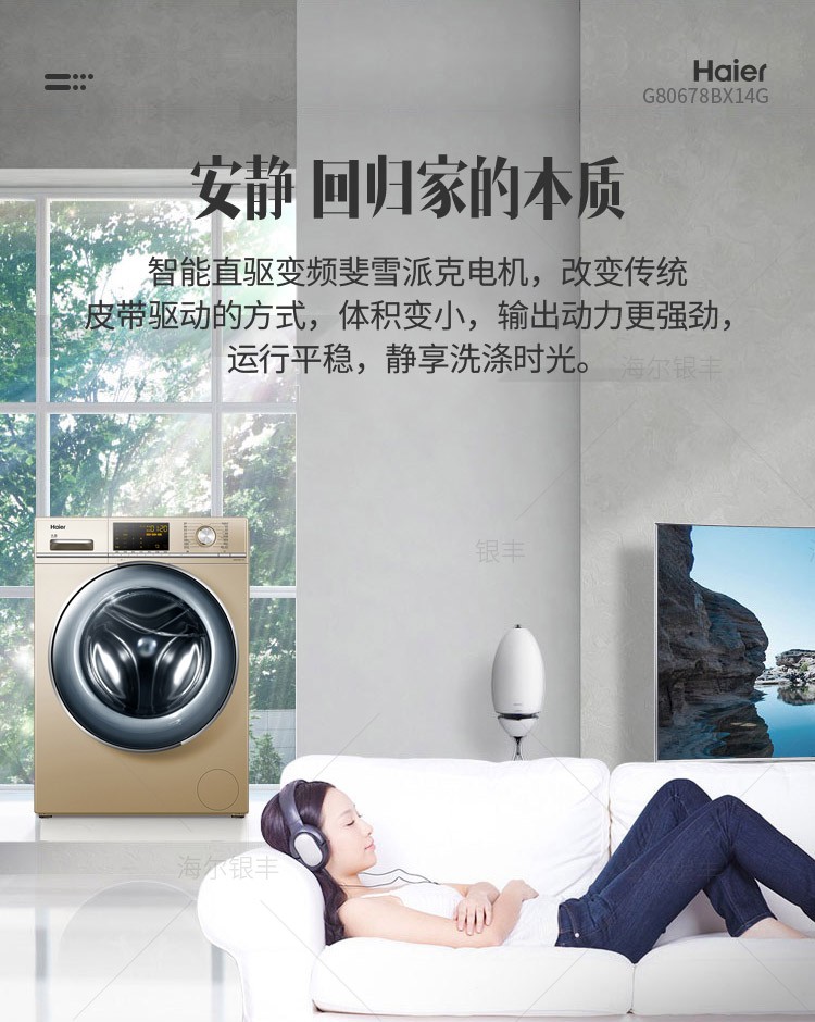 • 商品名称:海尔滚筒洗衣机 直驱变频节能静音 纤薄型全自动海尔洗衣机 10公斤直驱G100678B14SU1