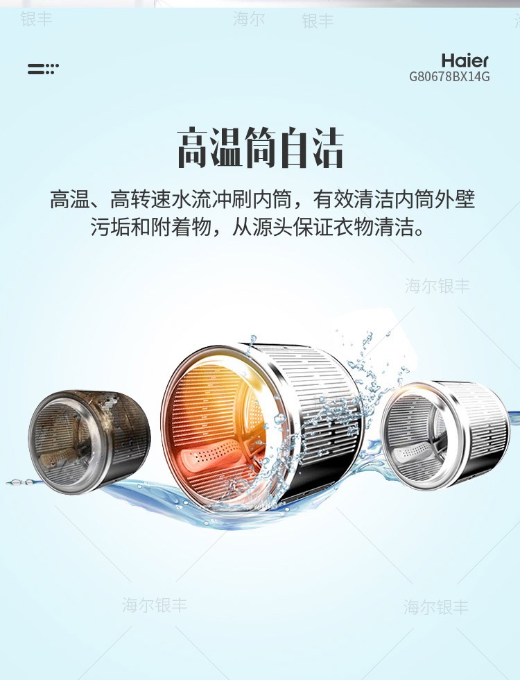 • 海尔滚筒洗衣机 直驱变频节能静音 纤薄型全自动海尔洗衣机 10公斤直驱G100678B14SU1