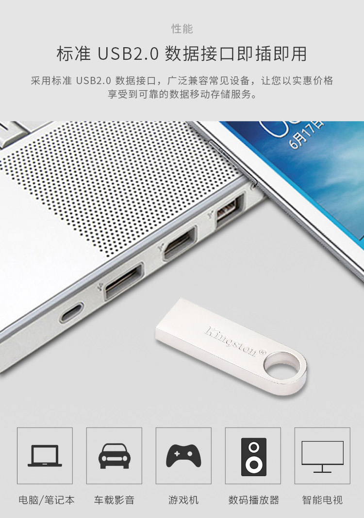 • 商品名称:金士顿(Kingston)16GB U盘 DTSE9H 金属 银色 精巧时尚 稳定可靠