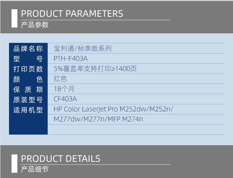 • 商品名称:宝利通(POLYCOM)CF403A(201A)适用机型HP Color LaserJet Pro M252dw/M252n/M277dw/M277n/MFP M274n