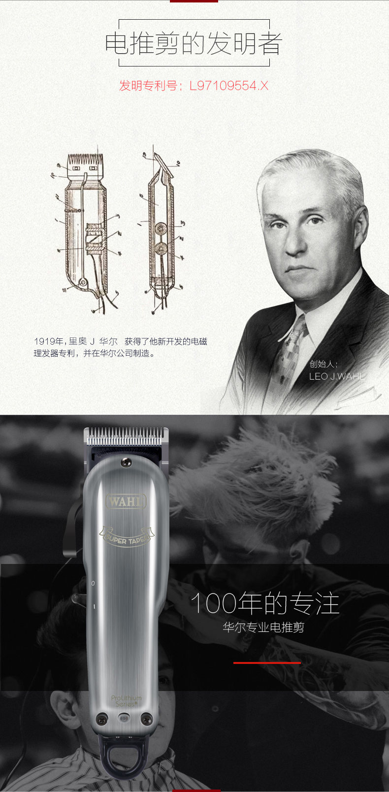 • 商品名称:华尔(WAHL)理发器电推剪 专业发廊电推子理发师剃头刀电动充电理发剪8591-018