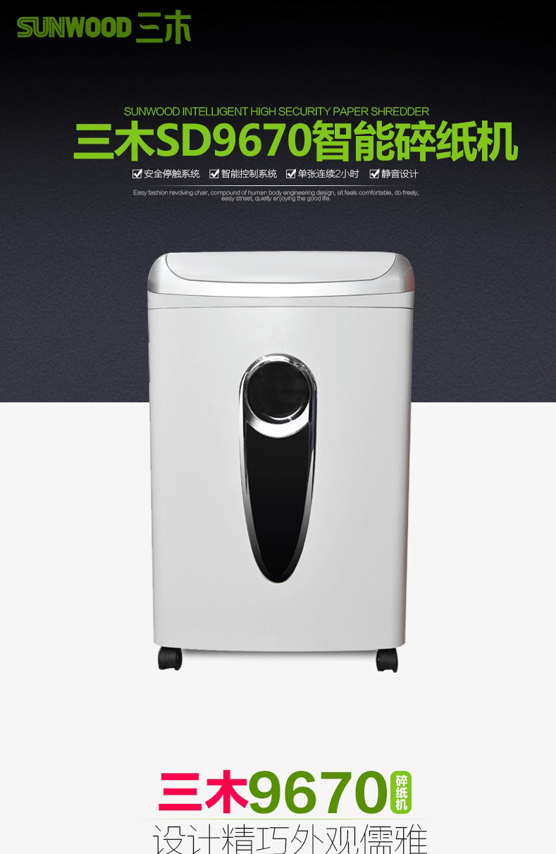 • 商品名称:三木(SUNWOOD)SD9670锰钢侠系列碎纸机/文件粉碎机 五级保密 双入口