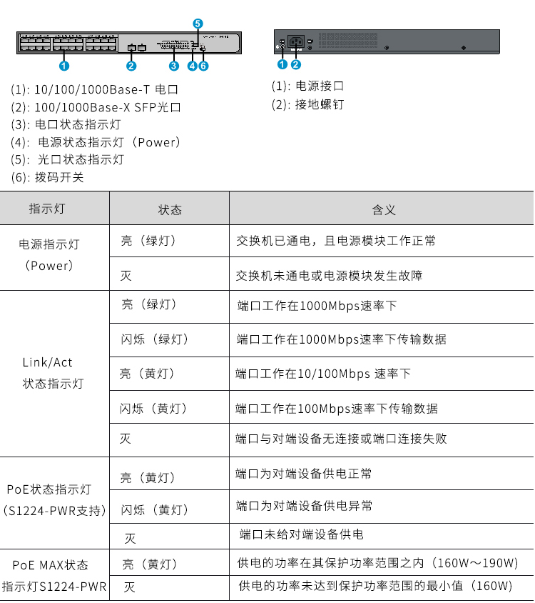 • 华三(H3C)24口全千兆企业级交换机 POE机架式网络交换器 S1324G-PWR