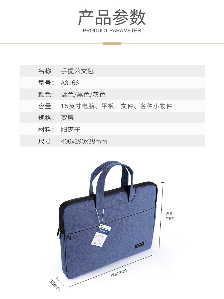 • 商品名称:齐心(Comix) 事务包拉链袋 手提商务会议包 蓝 A8166