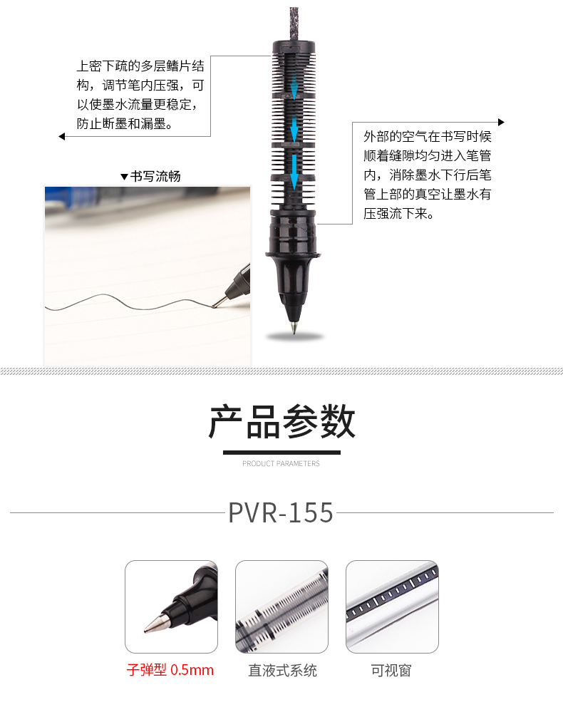 • 商品名称:白雪(snowhite)直液式走珠笔子弹型0.5mm中性笔PVR-155黑色 12支/盒