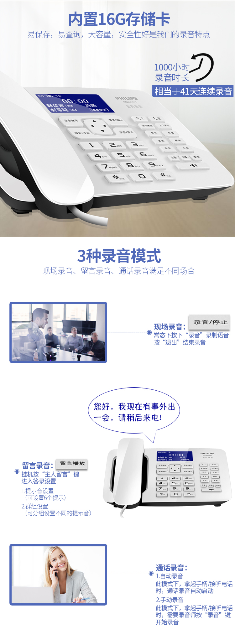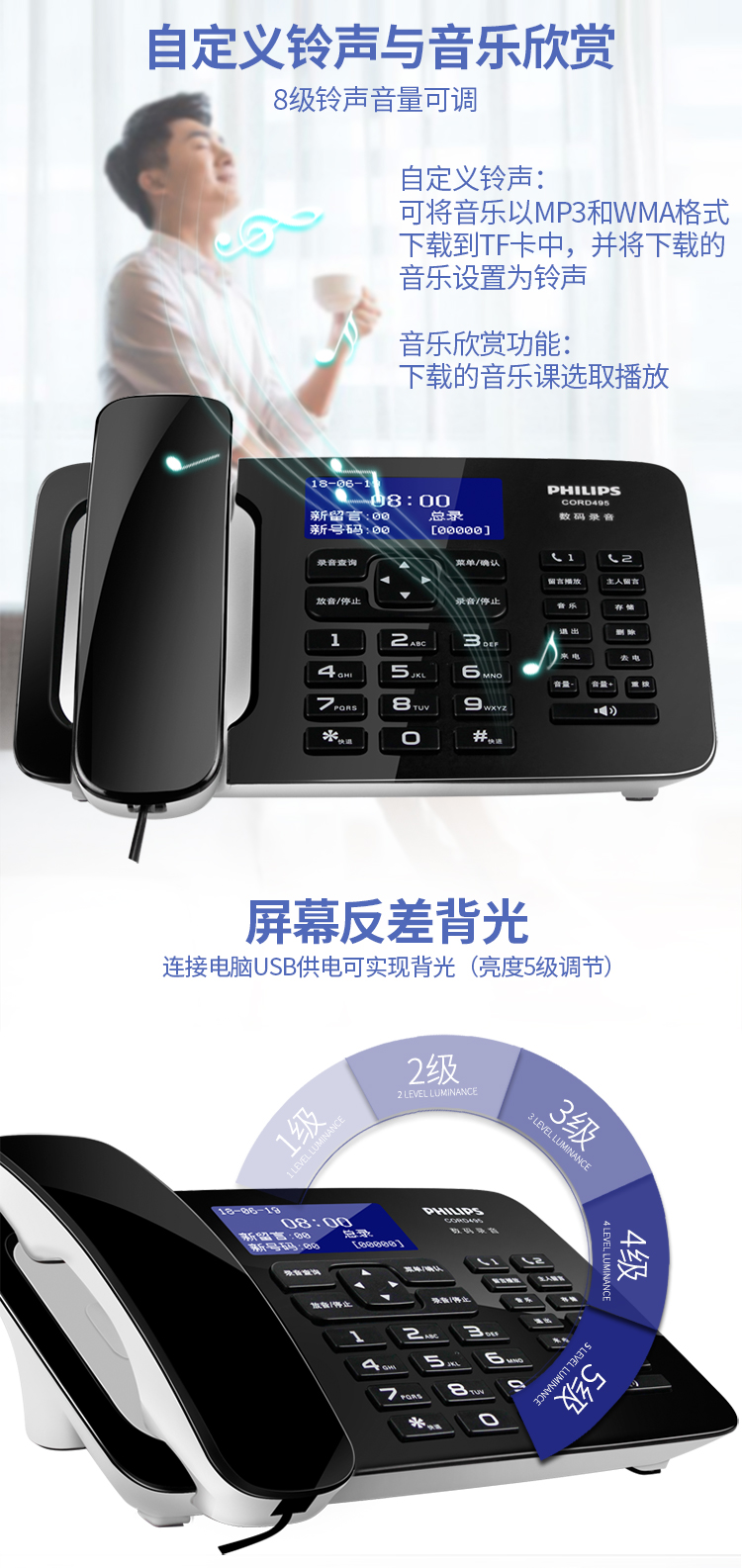 • 商品名称:飞利浦(PHILIPS)录音电话机 固定座机 CORD495黑色