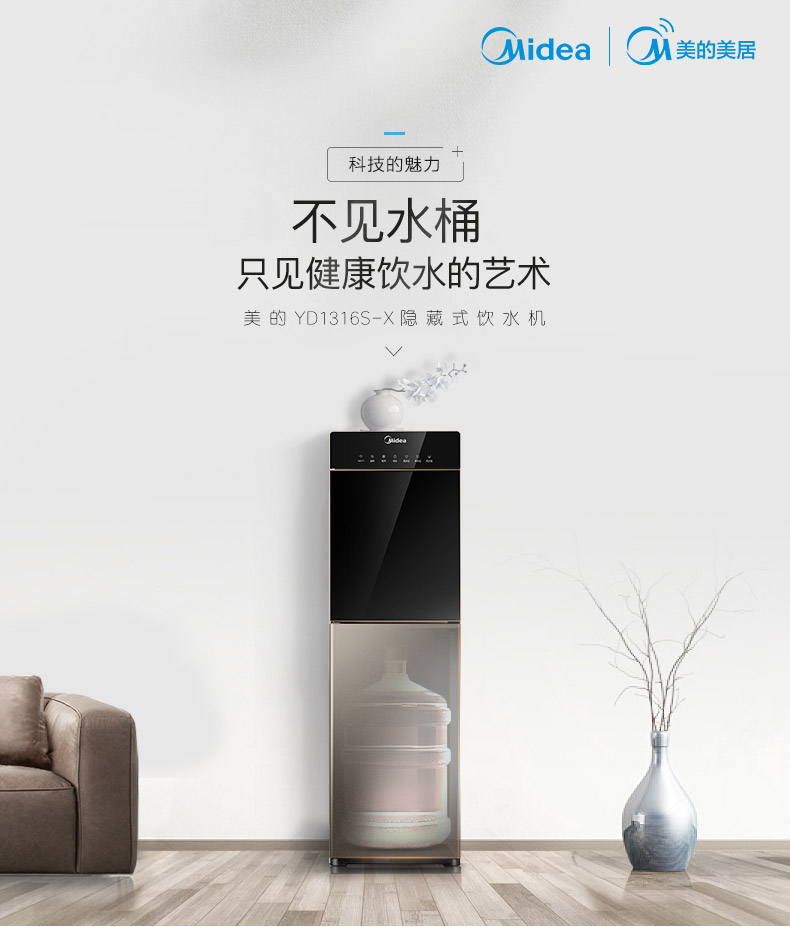 • 美的(Midea)饮水机下置式水桶家用立式冰热智能wifi外置沸腾胆加热HEPA过滤 YD1316S-X