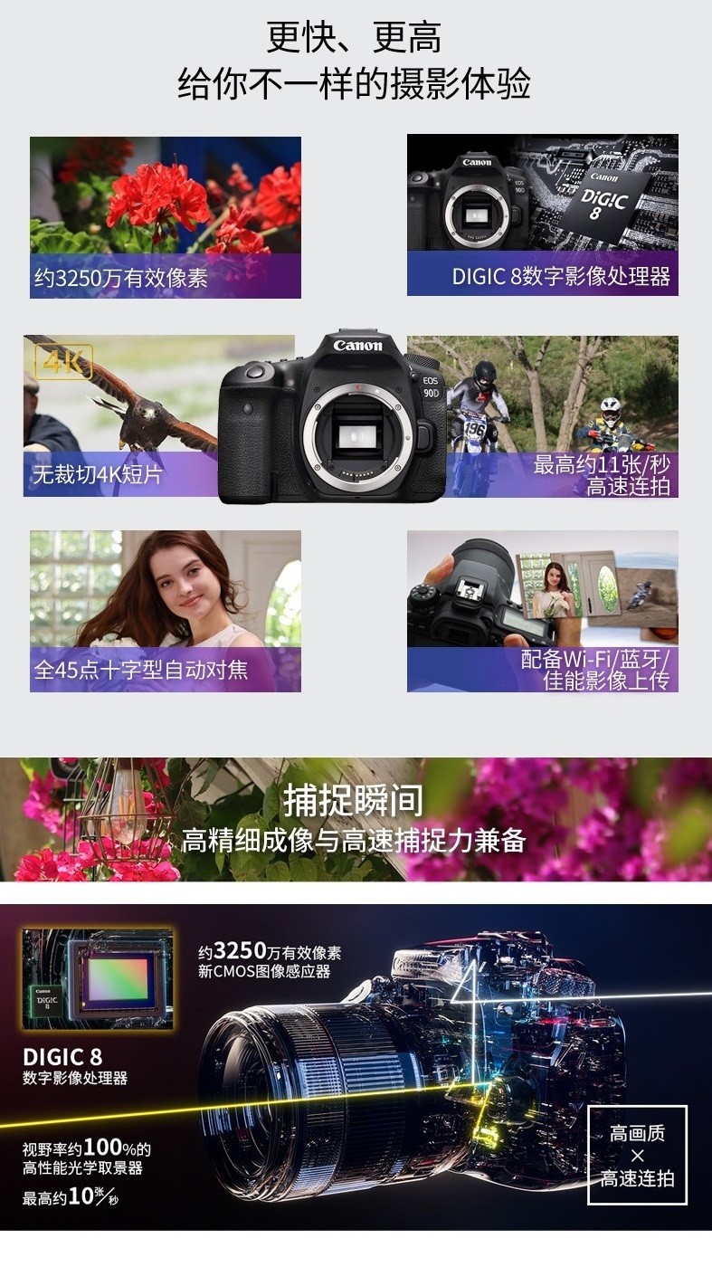 • 商品名称:佳能(Canon)EOS 90D 单反相机 单反套机(EF-S 18-200mm f/3.5-5.6 IS 单反镜头)