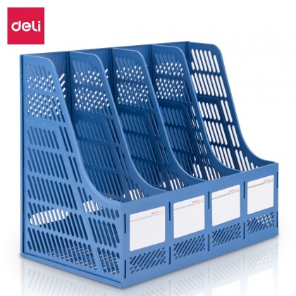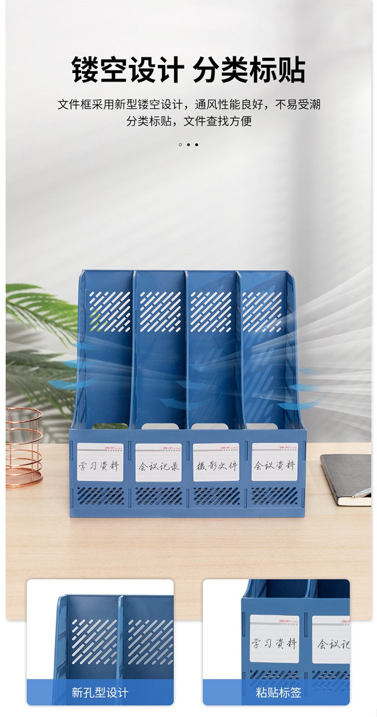• 商品名称:得力(deli)四联镂空桌面文件框 四栏带标签稳固文件栏/文件筐/资料框 蓝色9848
