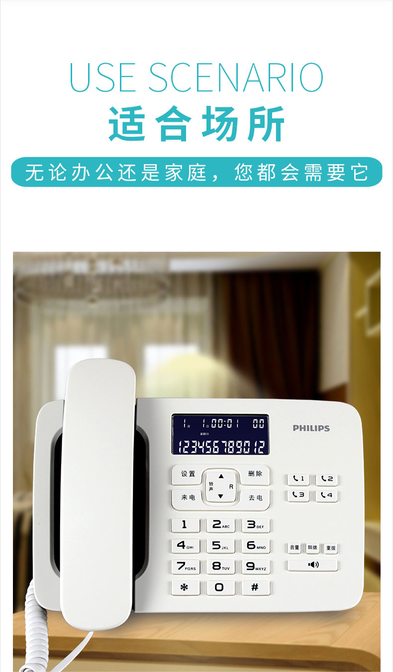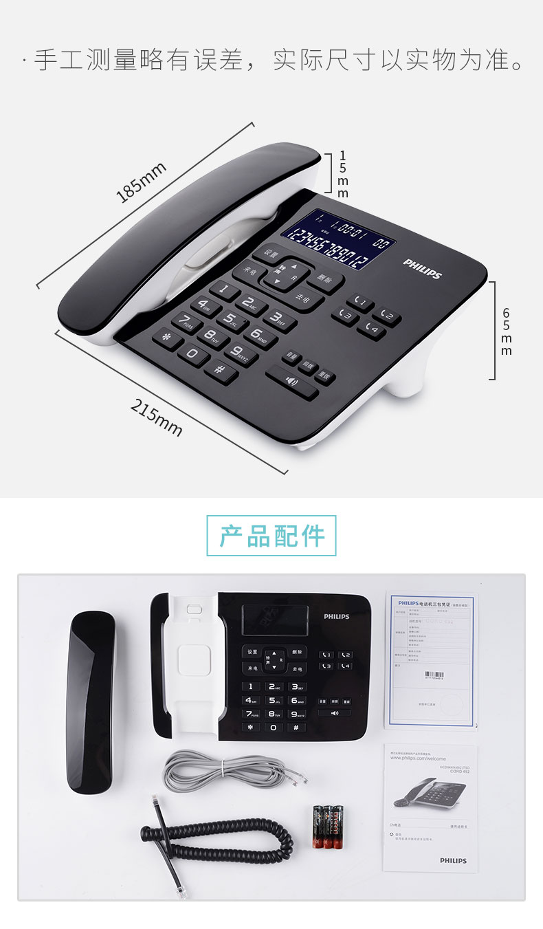 • 商品名称:利浦(PHILIPS)电话机座机 固定电话双插孔 一键拨号 CORD492 (黑色)