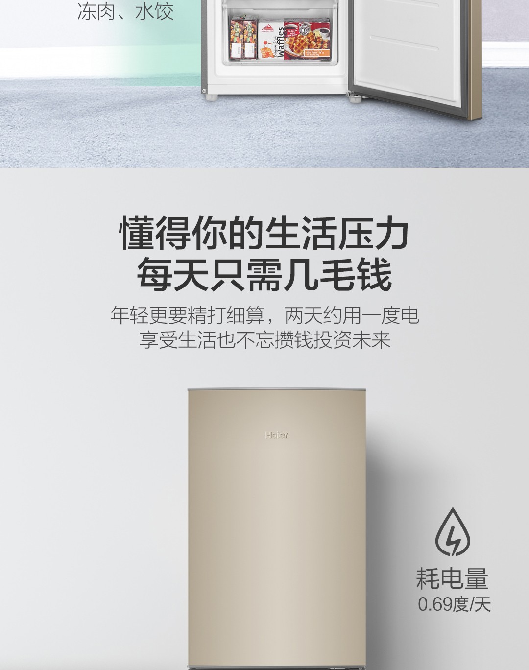 • 海尔 (Haier)178升两门双门直冷冰箱节能静音铝板蒸发器家用小型冰箱BCD-178TMPT