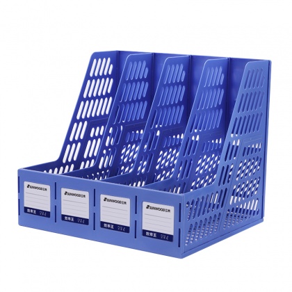 • 三木(SUNWOOD)效率王系列 四联带标签文件框/资料框 牢固耐用 明丽蓝 P33-4