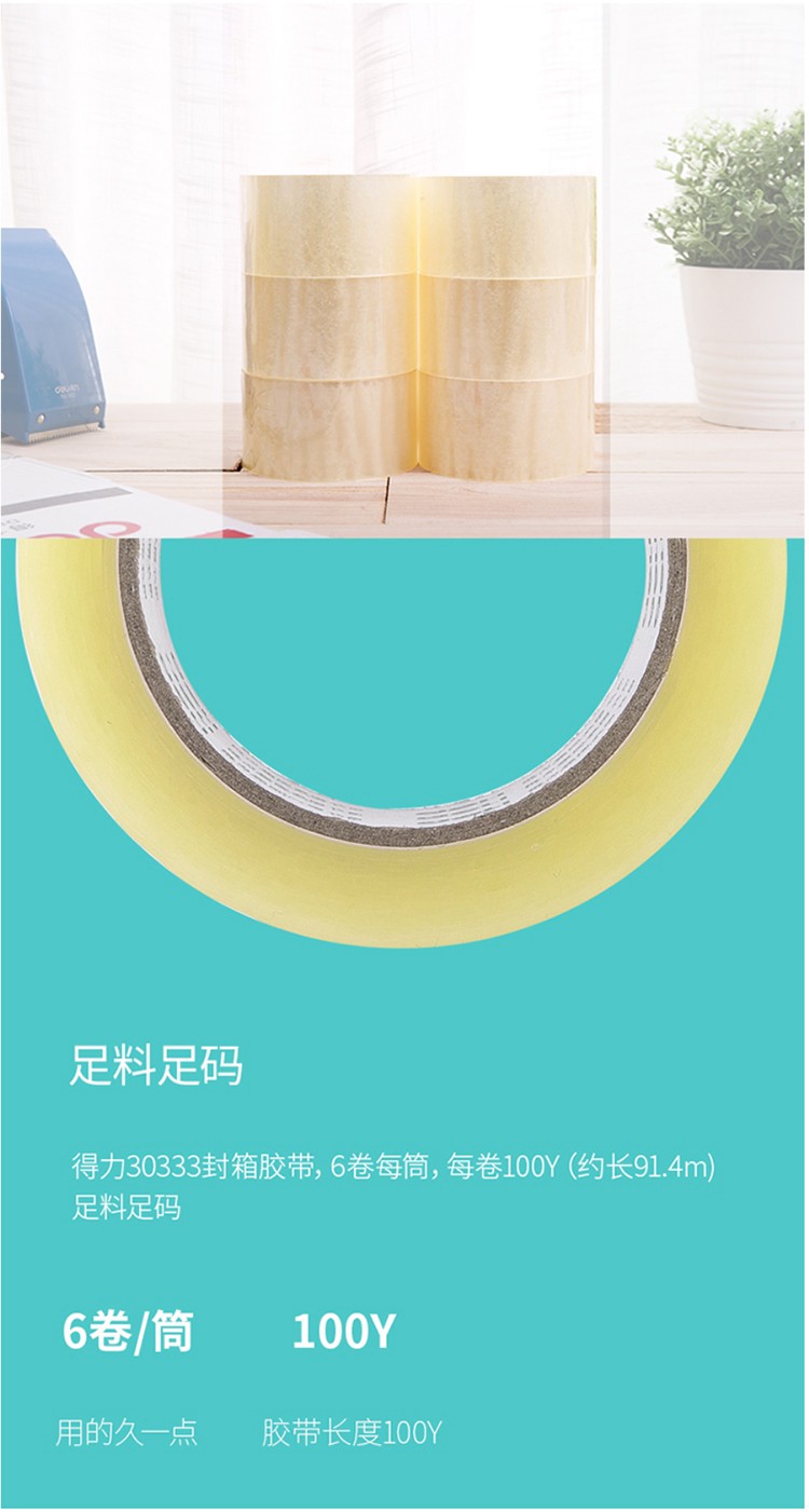 • 商品名称:得力(deli)高品质透明封箱胶带打包宽胶带 60mm*100y*45μm(91.4m/卷)30333