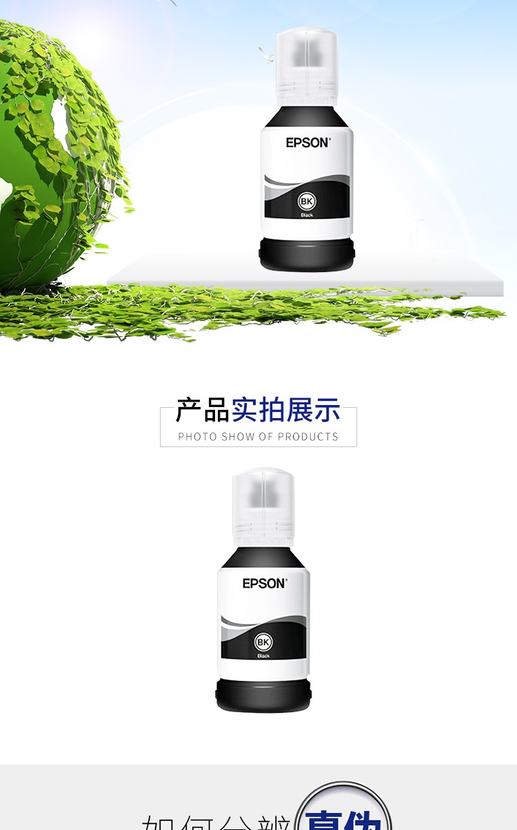 • 商品名称:爱普生 EPSON T06E1 009墨水 L15158 L15168 彩色墨仓式喷墨打印机墨水防水 黑色墨盒(约7500页)