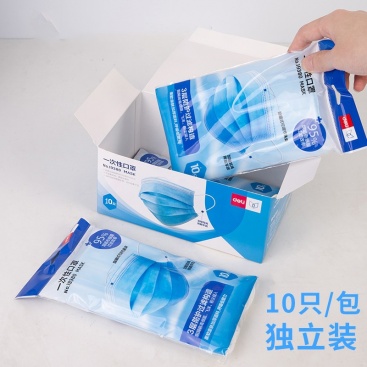 • 得力 deli 19380 成人平面口罩(商超装10只/包)(蓝色)(只)
