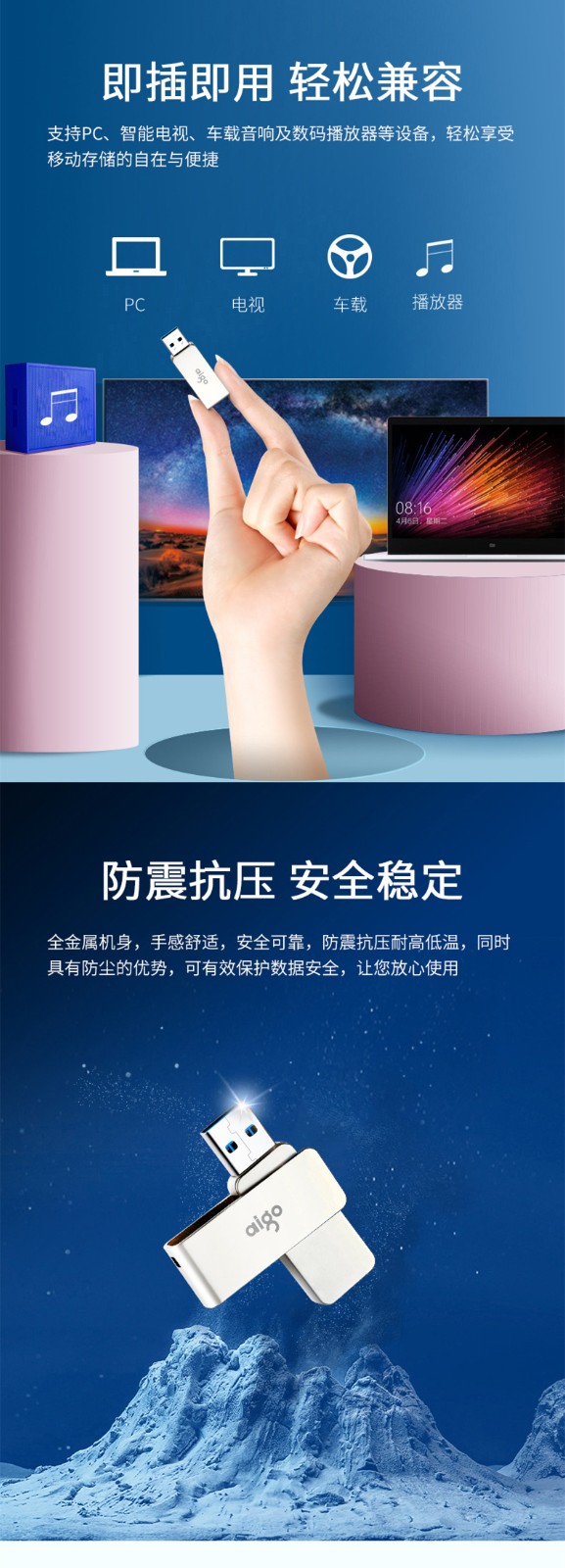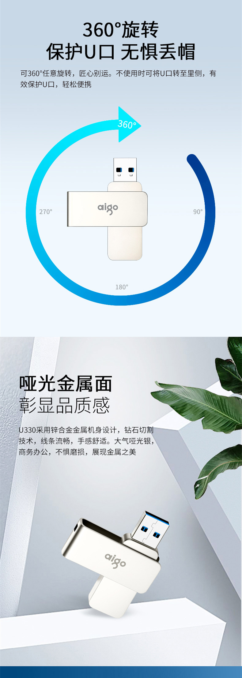 • 商品名称:爱国者(aigo)128GB USB3.0 U盘 U330金属旋转系列 银色 快速传输 出色出众