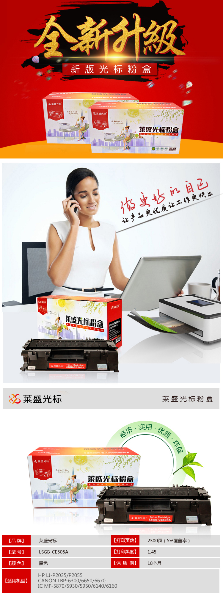 • 商品名称:莱盛光标 LSGB-CE505A黑色硒鼓适用HP LJ-P2035/P2055 CANON LBP-6300/6650 黑色