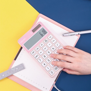 • 得力(deli)时尚办公双电源计算器 12位大屏显示计算机 玫瑰金1576A
